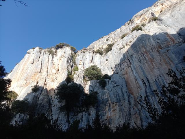 Salimos del callejón para recorrer una pared escogida por los escaladores por su orientación sur, para los días mas fríos.