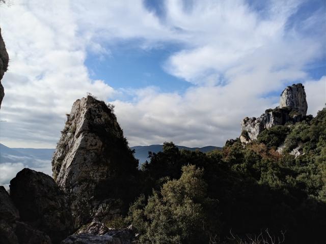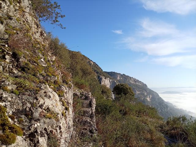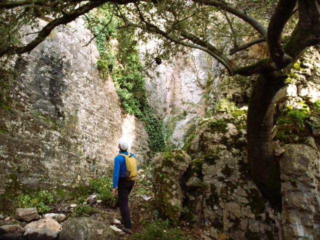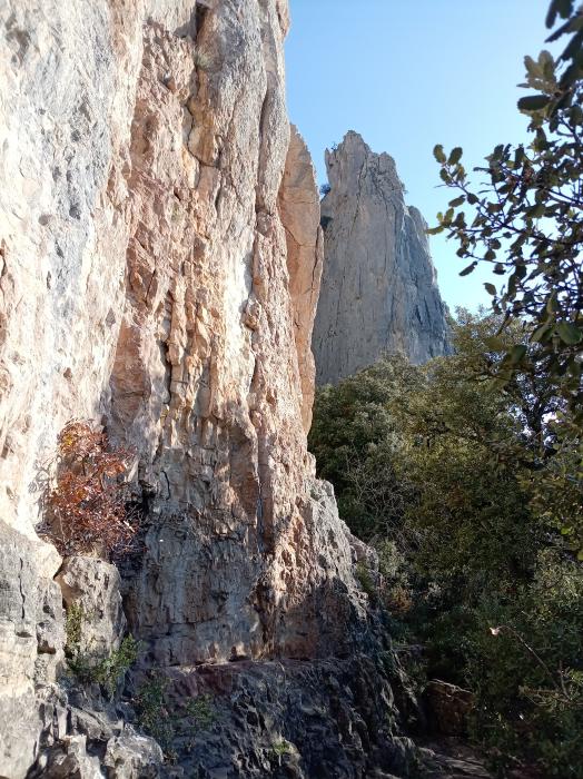 Veremos una formación denominada “la mano”, que semeja un puño cerrado, nos encontramos bajo las paredes del “Cervinico”, en honor al monte Cervino. Seguimos por el sendero escoltados por la “pared de boj”.