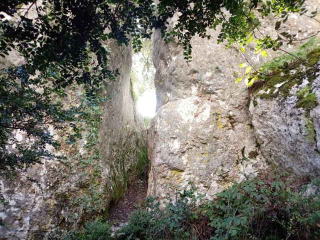 Atravesamos esta grieta natural que antiguamente tuvo puertas, ya que quedan las marcas de los goznes labradas en la roca, tanto a la entrada, como a la salida.