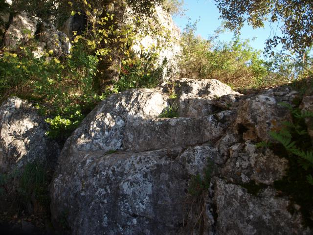Una vez atravesada esta grieta, ascendemos por unos escalones labrados en la roca para acceder al balcón de los lirios, donde se sitúa, en un lugar privilegiado, el altar o santuario prehistórico.