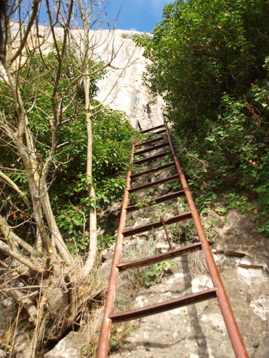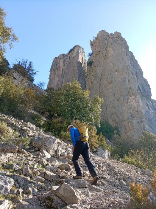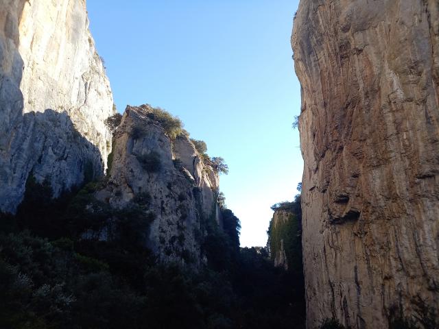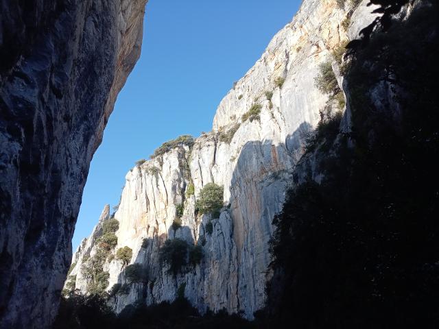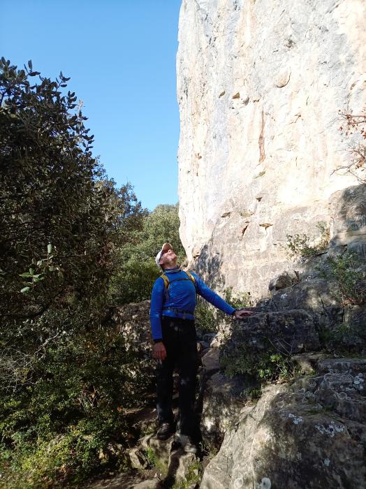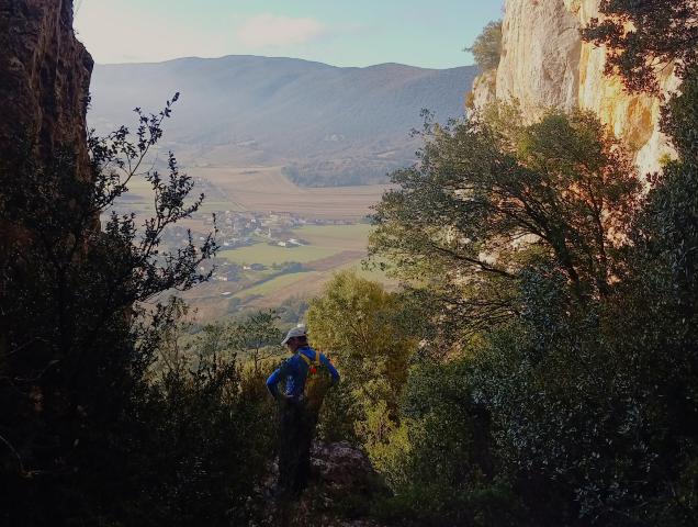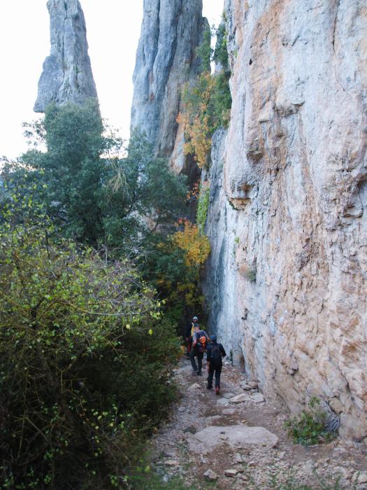 Salimos del callejón para recorrer una pared escogida por los escaladores por su orientación sur, para los días mas fríos.
